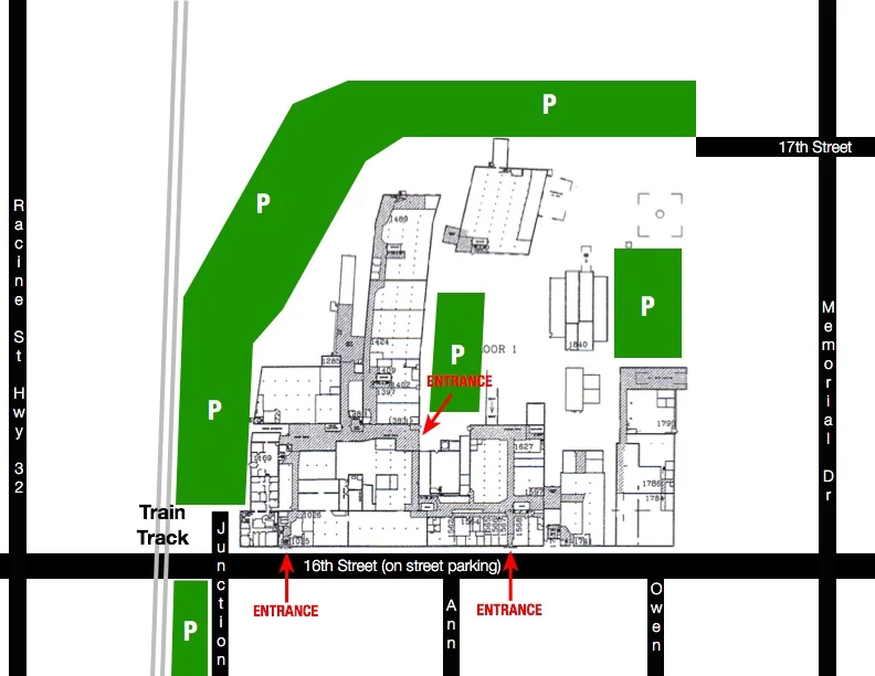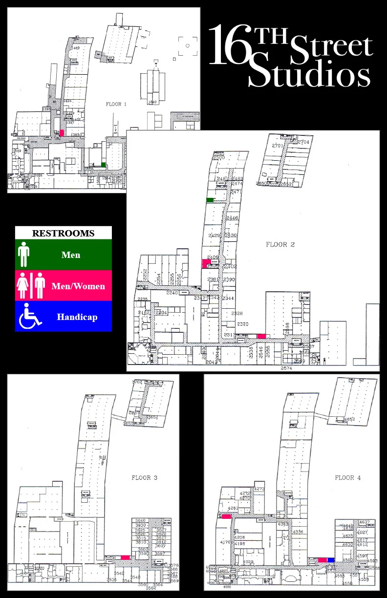 The Racine Arts & Business Center is large old factory building which can be a bit confusing to find your way around. These maps will help give you a general idea of the layout. When in doubt stop in the office which is on the first floor at the 1405 16th Street entrance.